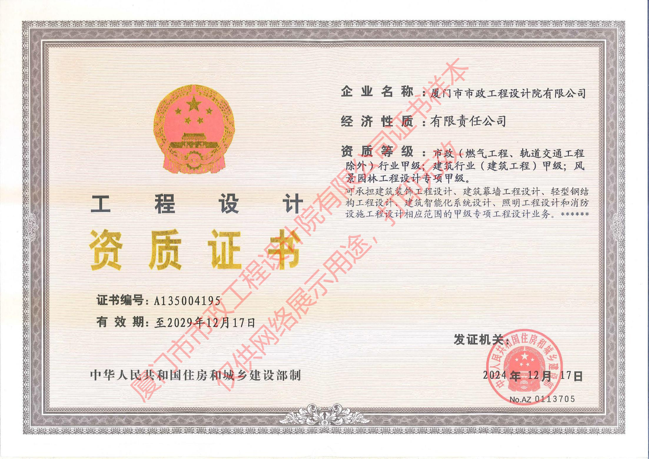 廈門市政市政、建筑、風(fēng)景園林設(shè)計(jì)甲級(jí)