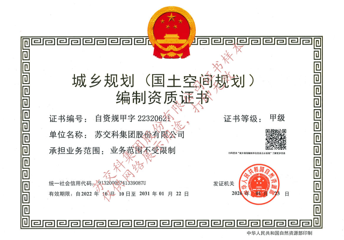 蘇交科擁有工程行業(yè)各領(lǐng)域甲級(jí)資質(zhì),包括城鄉(xiāng)規(guī)劃甲級(jí)資質(zhì);工程咨詢綜合甲級(jí)資質(zhì);工程咨詢專業(yè)甲級(jí)資質(zhì)(公路、生態(tài)建設(shè)和環(huán)境工程、水文地質(zhì)、工程測(cè)量、巖土工程、城市規(guī)劃、鐵路、城市軌道交通、港口河海工程、市政公用工程(市政交通、給排水)、水利工程、旅游工程);工程設(shè)計(jì)綜合甲級(jí)資質(zhì);工程勘察綜合類甲級(jí)資質(zhì);測(cè)繪甲級(jí)資質(zhì);公路工程和市政公用工程總承包一級(jí)資質(zhì);公路工程、水運(yùn)工程、市政公用工程監(jiān)理甲級(jí)資質(zhì);公路工程甲級(jí)、公路工程交通工程專項(xiàng)、水運(yùn)工程材料甲級(jí)和水運(yùn)工程結(jié)構(gòu)甲級(jí)試驗(yàn)檢測(cè)資質(zhì)。